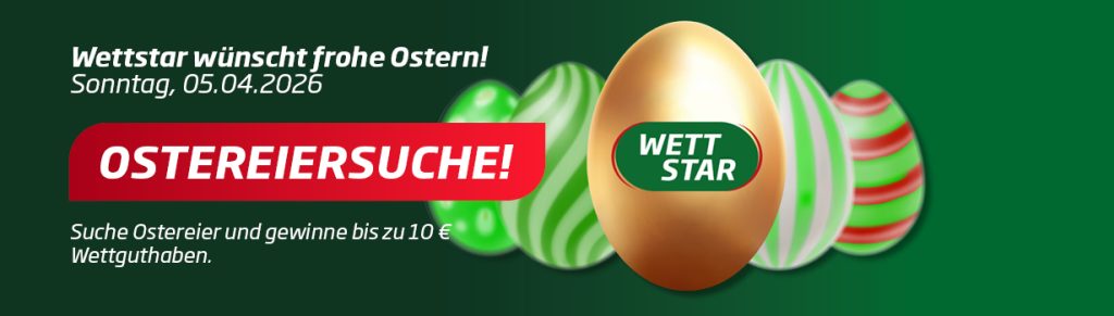 Der Auftakt zum Oster-Programm im deutschen Galopprennsport erfolgt am Sonntag, 5. April 2026, in Berlin-Hoppegarten. Beim Saisonauftakt gehen hier drei Listenrennen über die Bühne. Auch in diesem Jahr möchte WETTSTAR seine Kunden beschenken und veranstaltet seine traditionelle „Ostereier-Suche“: Wer am Ostersonntag (5. April 2026) auf der Wettseite die dort platzierten „WETTSTAR-Ostereier“ findet, kann bis zu 10 Euro Bonus gewinnen, die dem Wettkonto im Erfolgsfalle sofort gutgeschrieben werden.