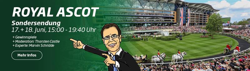Moderator Thorsten Castle und Wettexperte Marvin Schridde führen durch die Show, bei der es auch viele Hintergrundberichte geben wird. Alle Rennen an den ersten beiden Tagen von Royal Ascot werden gezeigt, darunter solche Highlights wie die Queen Anne Stakes, die Coventry Stakes, die King Charles III Stakes und die St James’s Palace Stakes am 17. Juni, die Queen Mary Stakes, die Queen’s Vase, die Duke of Cambridge Stakes und die Prince of Wales’s Stakes am 18. Juni, der Gold Cup, die Ribblesdale Stakes, die Norfolk Stakes und die Hampton Court Stakes am 19. Juni, die Coronation Stakes, der Commonwealth Cup und die King Edward VII Stakes am 20. Juni, sowie die Queen Elizabeth II Jubilee Stakes und die Hardwicke Stakes am 21. Juni.
