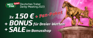 WETTSTAR-Online-Aktionen zum 128. Deutschen Traber-Derby: Verlosung, Bonuspyramide und Bonusshop-Sale