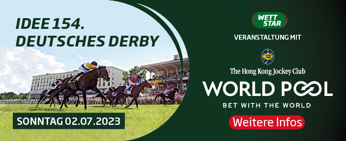 Die Galopper-Welt blickt am Sonntag nach Hamburg, denn das bedeutendste Rennen des Jahres, das IDEE 154. Deutsche Derby (Gruppe I, 650.000 Euro, 2.400 m) am 02. Juli 2023 auf der Rennbahn in Hamburg-Horn, wird zum ersten Mal in seiner Geschichte LIVE nach Hong Kong übertragen und in dem Wett-Eldorado in Asien zu bewetten sein. Das Derby ist Bestandteil des vom Hong Kong Jockey-Club gemanagten World Pool.