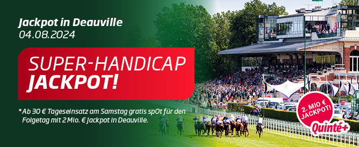 2 Millionen Euro – diese tolle Summe winkt im Sonder-Jackpot der Quinté+-Wette am Sonntag, 4. August, im Super-Handicap in Deauville.