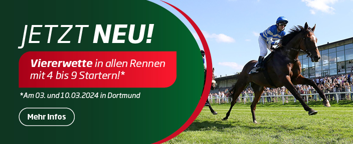 Viererwette in allen Rennen mit vier bis neun Startern am 03. und 10. März 2024 in Dortmund!