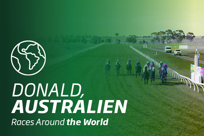 Diesmal haben wir mit Donald eine Rennbahn in Victoria/Australien ausgesucht. Für eine kleine regionale Stadt ist Donald eine große Rennstadt. Vollblutrennsport in Donald ist ein wichtiger Bestandteil des sozialen und gemeinschaftlichen Gefüges und Geistes der Stadt. Mit nur 1700 Einwohnern ist Donald ein ruhiges, aber interessantes Landwirtschaftsstädtchen mit einem lebendigen Geist. Kein Wunder also, dass die erste Rennbahn in Donald Gerüchten zufolge in der Hauptstraße des Ortes lag!