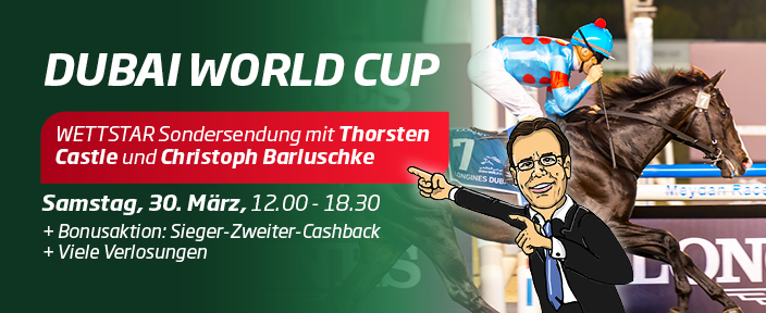 WETTSTAR-Live-Sonder-Sendung und Cashback-Aktion zum Dubai World Cup!