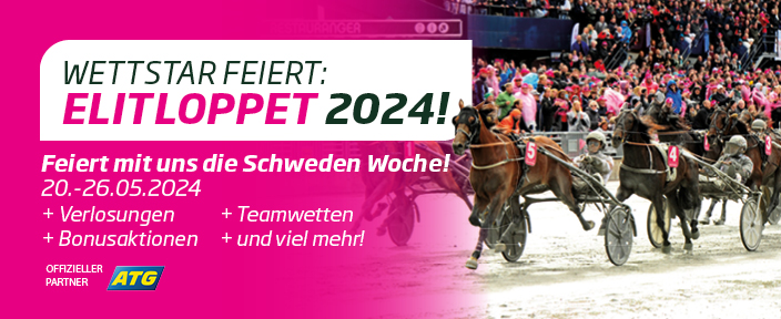 Auch in diesem Jahr feiert WETTSTAR, der bedeutendste Vermittler von Pferdewetten im deutschen Pferdesport, den Elitloppet und wartet mit der großen Schweden-Woche auf - vom Montag, 20. Mai, bis Sonntag, 26. Mai 2024.