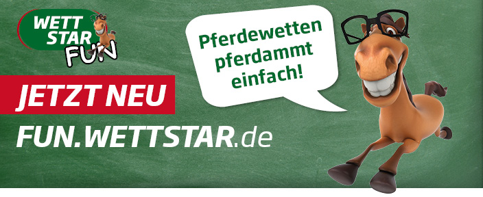 Neustadt, 27. Juni 2021: Die Marke WETTSTAR, Deutschlands bedeutendster Wettanbieter für Pferdewetten im Galopp- und Trabrennsport, erweitert sein Online-Angebot. Neben der bestehenden Plattform geht am 27. Juni 2021 eine weitere Website für Einsteiger an den Start. Die neue Homepage FUN.WETTSTAR.de bietet eine simplifizierte Oberfläche für Neulinge. Schnell lernen die Kunden hier die einfachsten Wettarten, sowie das wichtigste „Know How“ rund um den Pferderennsport. Spielend leicht erklärt der Wettvermittler dort, wie man unkompliziert seine erste Wette abgibt.